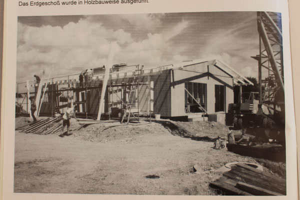 Somit stehen dem Verein und seinen Mitgliedern im neuen Clubhaus künftig mehr als 270 qm zur Verfügung. Hierbei ist nicht einmal die große Sonnenterrasse mit herrlichem Ausblick berücksichtigt. Wie bereits erwähnt wurde durch die Beschaffenheit des Baugrundes für den Keller eine besondere Ausführung notwendig. Er besteht aus einem Stahlbetonkörper und mit Ziegel gemauerten Innenwänden. Das Erdgeschoss wurde in Holzbauweise ausgeführt.